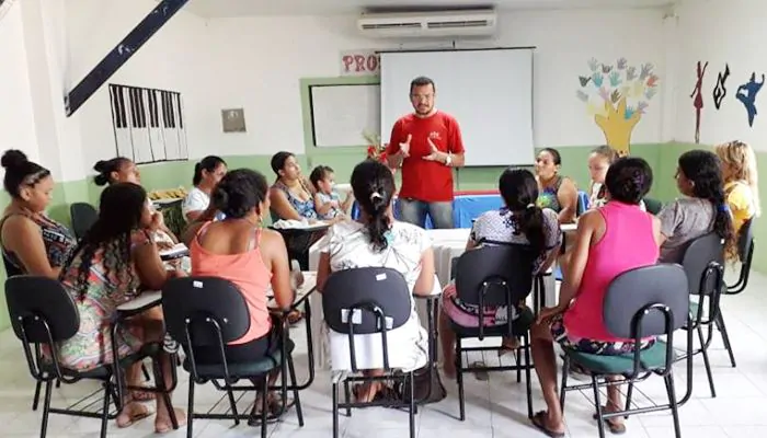Bons-tratos em Família é um conjunto de ferramentas que busca ajudar as famílias a encontrar-se de uma maneira especial e, em forma de jogo, descobrir e pensar juntos as histórias familiares, conhecer-se melhor, desenvolver habilidades de comunicação, encontrar novas formas de expressar afeto, aprender a valorizar a singularidade de cada integrante, construindo dia a dia, a cultura dos bons-tratos e na Ong Centro de Apoio à Criança – Ceacri, o nosso Gestor Erivaldo Paiva aplicou com o grupo de gestantes da nossa organização e foi uma manhã de muitas histórias engraçadas e debate sério sobre os relacionamentos em nossas famílias e ficou um gostinho de quero mais e nosso gestor ficou de voltar mais vezes para brincar e aprender com esse e outros grupos.