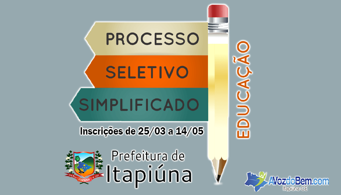 Nesta quinta-feira, dia 21, foi divulgado o edital 001/2019, que torna público o Processo Seletivo para contratação, por tempo determinado, de profissionais para a Secretaria Municipal de Educação de Itapiúna.