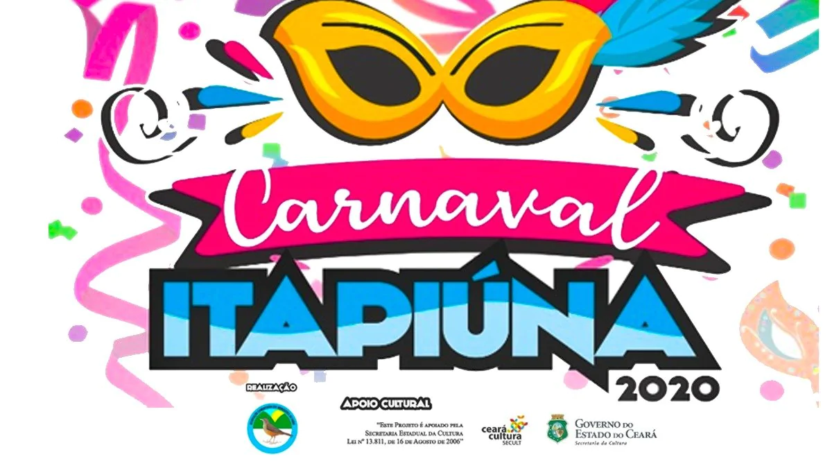 Na quinta-feira, dia 20, acontecerá o carnaval de Itapiúna 2020, o evento contará com desfile de blocos , apresentações de bandas de marchinhas e concurso de fantasias.