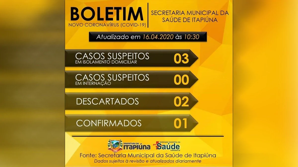 Segunda a Secretaria de Saúde de Itapiúna, o caso confirmado não está sendo contabilizado pela plataforma de divulgação dos indicadores da COVID-19 do Estado como caso do município de Itapiúna, em razão do paciente ser residente de outro município, tendo o mesmo apresentado sintomas durante estadia em Itapiúna, sendo portanto notificado e testado aqui.