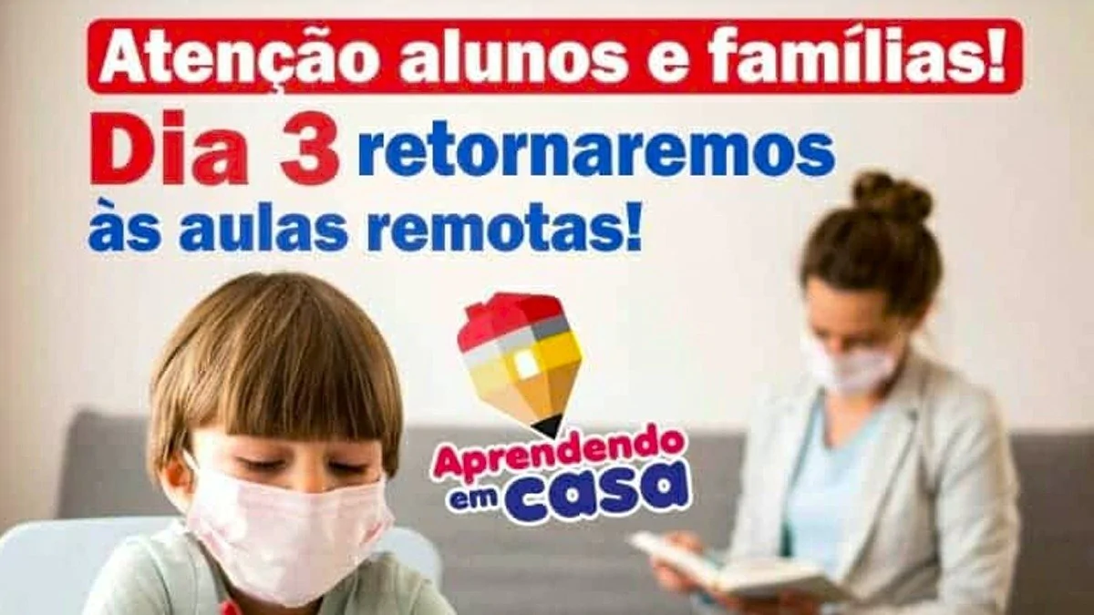 Secretaria Municipal de Educação de Itapiúna comunica a todos que as aulas remotas retornarão dia 03 de agosto. “Nosso compromisso é ofertar uma educação de qualidade, mas de forma responsável e virtual” finaliza a nota.