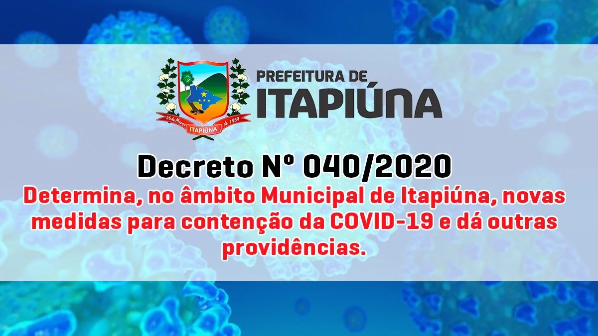 ⠀Nesta quarta-feira, dia 05, a Secretaria da Saúde de Itapiúna divulga novas orientações de prevenção à Covid-19, de acordo com o Decreto Municipal, nº 040/2020: