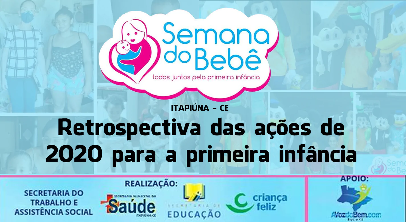 A Prefeitura de Itapiúna, através das Secretarias de Assistência Social, Saúde, Educação e Programa Criança Feliz, realiza de 23 a 27 de novembro, a Semana do Bebê. Em virtude da pandemia de Covid-19, o evento acontece de forma virtual. Confira o vídeo: Retrospectiva das ações de 2020 para a primeira infância.