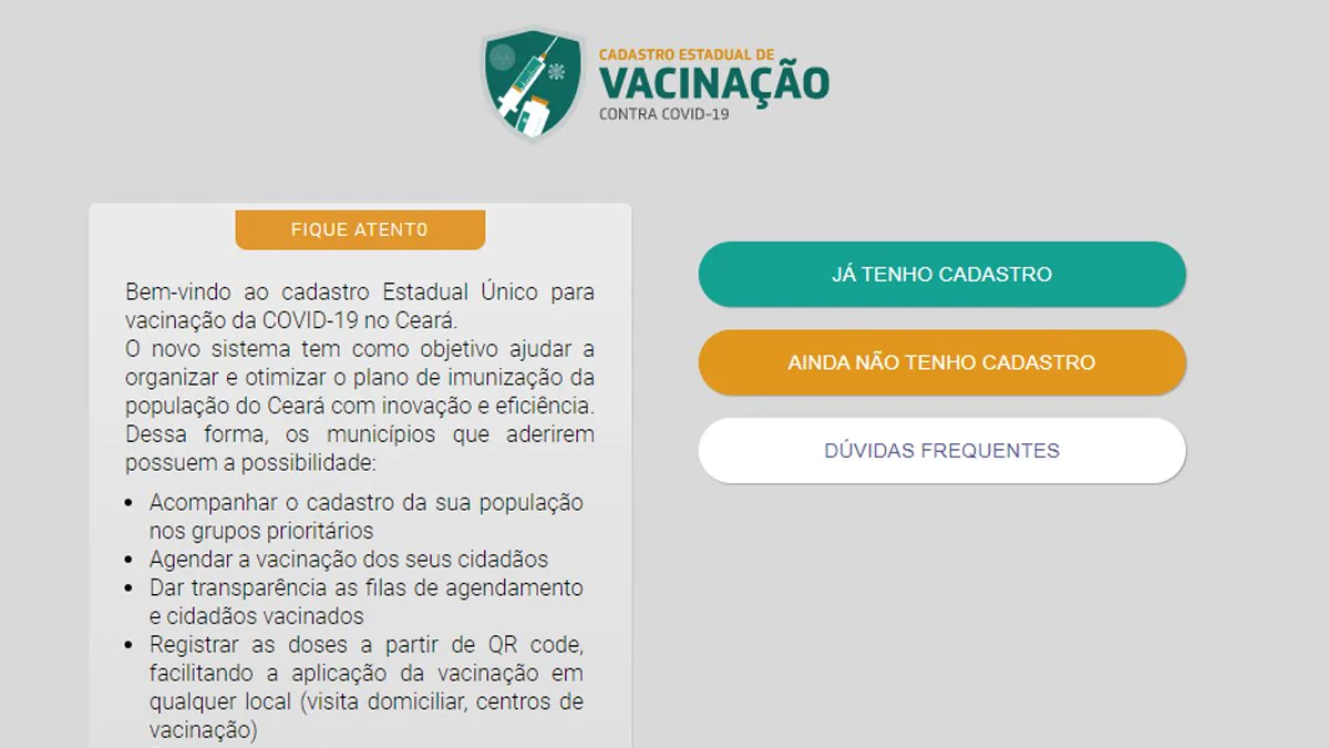 O agendamento é de responsabilidade de cada município. Caso a pessoa não se encaixe na fase em vigência de vacinação, o cadastro ficará armazenado no banco de dados da plataforma, permitindo maior organização do plano de imunização do Governo do Ceará.