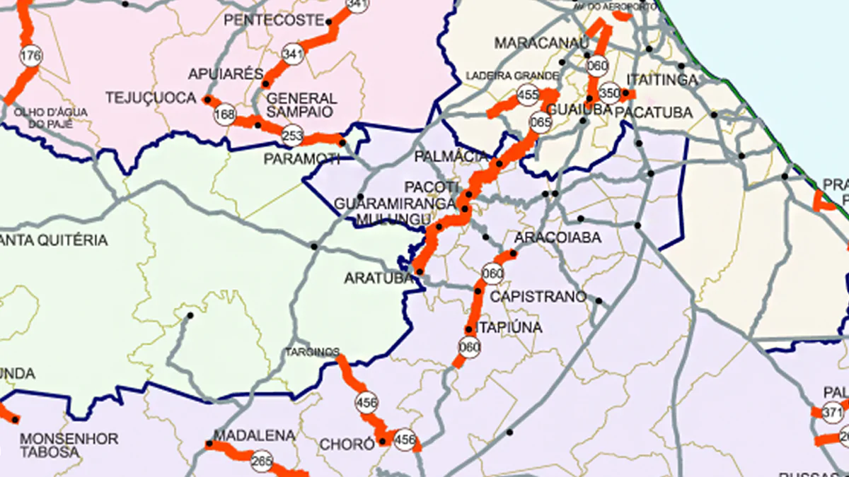 O pacote de serviços de recuperação funcional será efetuado conforme divisão regional em cinco lotes: Região Metropolitana de Fortaleza (1), com 127 km; Região de Itapipoca e Sobral (2),com 479,18 km; Região de Iguatu e Crato (3), com 429,65 km; Região de Aracoiaba, Limoeiro do Norte e Quixeramobim (4), com 384,76 km; e Região de Santa Quitéria, Crateús e Tauá (5), com 616,97 KM.