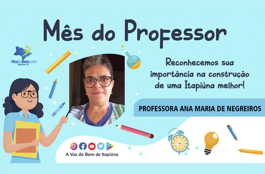 O site avozdobem.com, com objetivo de valorizar e reconhecer os profissionais do magistério que trabalharam ou trabalham no Município de Itapiúna, lança o quadro Mês do Professor, visando divulgar diariamente profissionais que merecem nosso reconhecimento e homenagem.