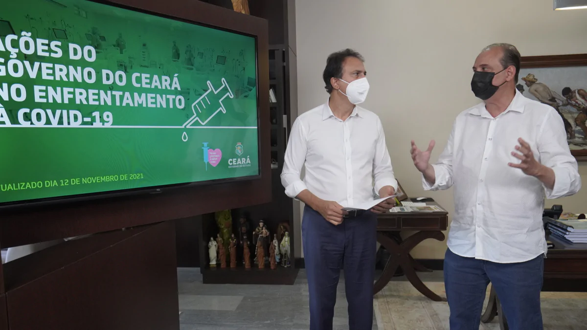 O governador do Ceará, Camilo Santana, anunciou, na tarde desta sexta-feira (12), por meio de transmissão via redes sociais, o novo decreto de combate à pandemia de Covid-19. Entre as decisões tomadas em conjunto pelo comitê que delibera sobre o assunto, está a obrigatoriedade da apresentação do Passaporte da Vacina para ingresso em restaurantes, bares e eventos em todo o Ceará. O decreto vigora por 15 dias, a contar desta segunda-feira (15). Ao lado do governador estava o secretário da Saúde do Ceará, Marcos Gadelha.