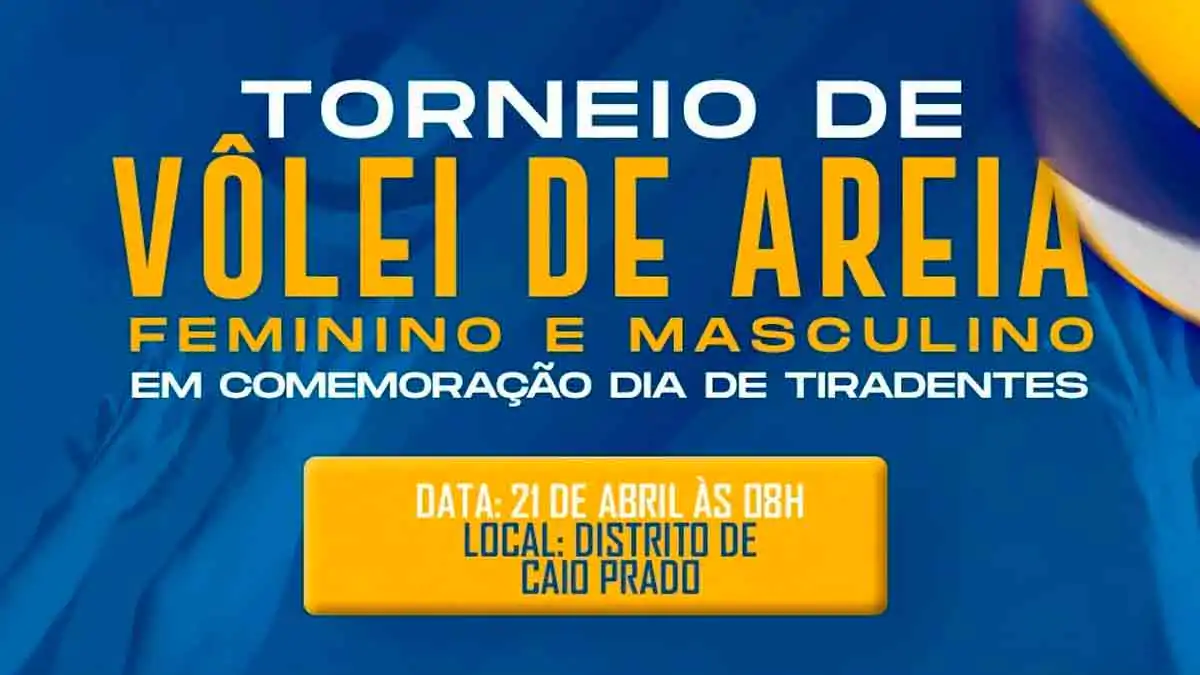 A Prefeitura de Itapiúna, por meio da Secretaria de Esporte está com inscrição abertas para o Torneio de Vôlei de Areia Feminino e Masculino em Comemoração ao dia de Tiradentes, realizado dia 21 de abril, às 8h, no distrito de Caio Prado.