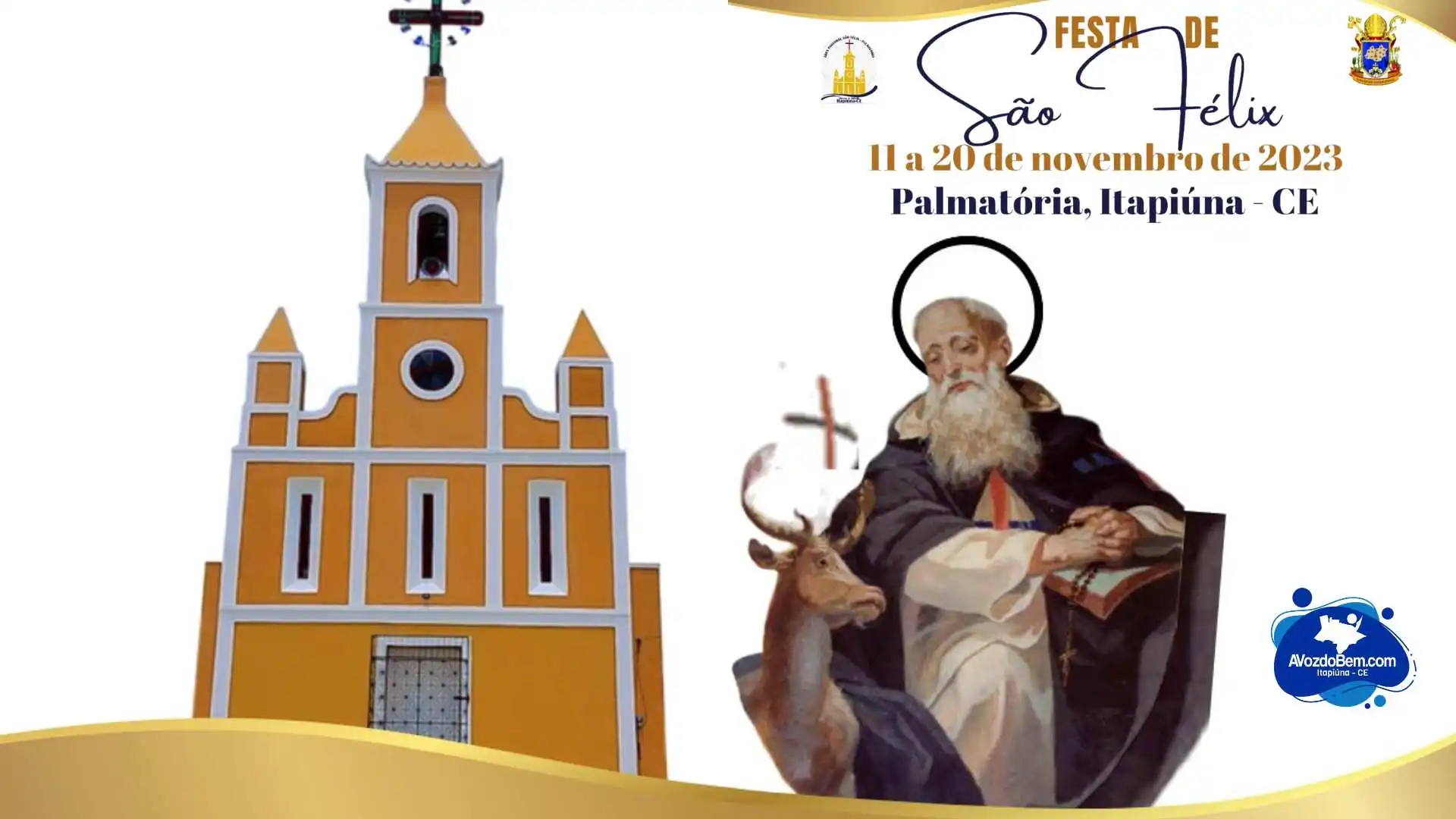 De 11 a 20 de novembro, acontecerá os festejos de São Félix em Palmatória, distrito de Itapiúna, a festividade tem como tema: Vocação e Missão, lema: “Corações ardentes, pé a caminho” (Lc. 24, 32-33), a Área Pastoral preparou uma programação especial que consta com missas, procissão, café comunitário, novenas e na parte social terá barracas comidas típicas, jantar beneficente e show de prêmios. Não perca nenhuma notícia, clique e siga nosso canal no WhatsApp para receber as notícias.